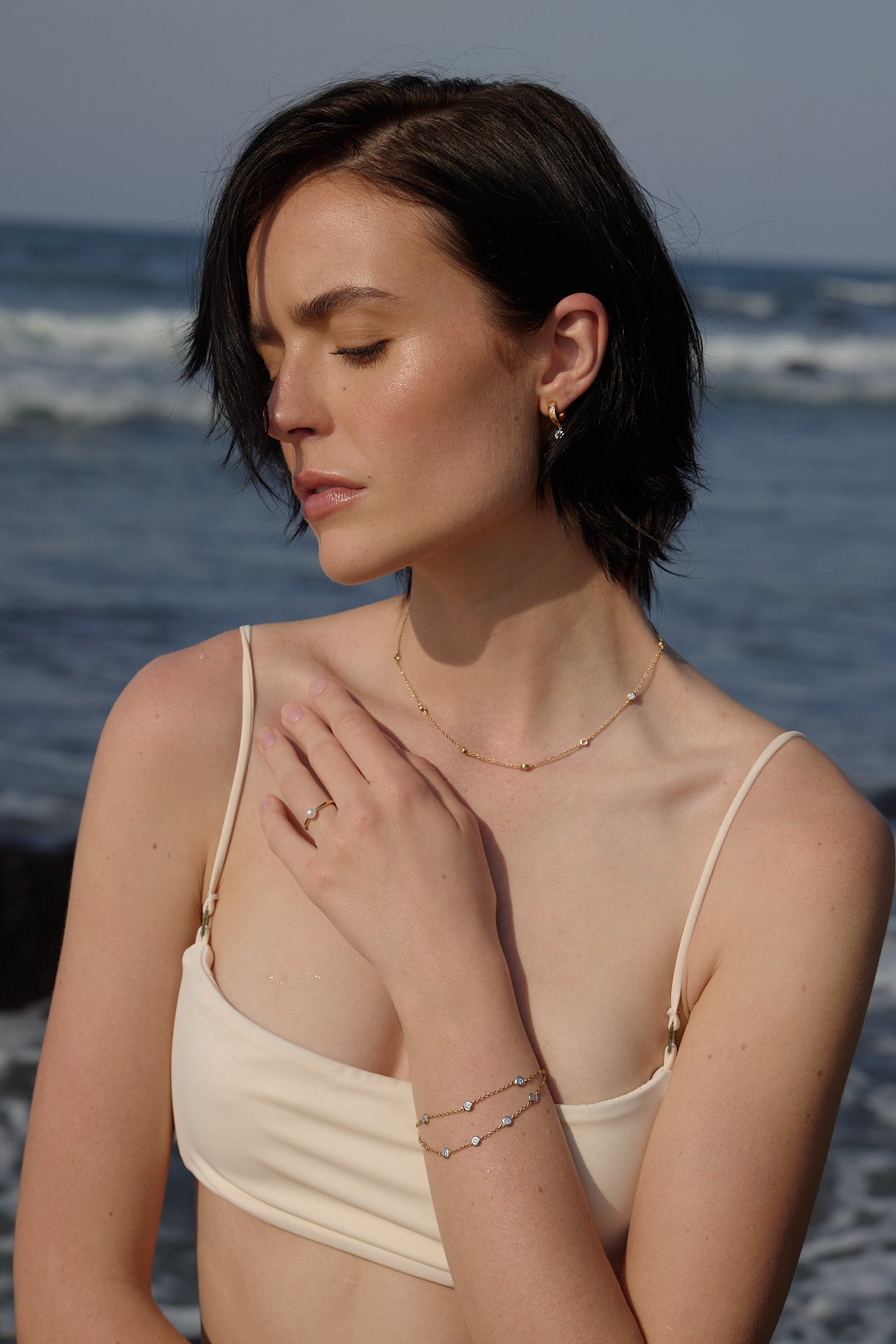 NAIMA round stone station chain necklace for layering for women gift in 18K yellow gold vermeil